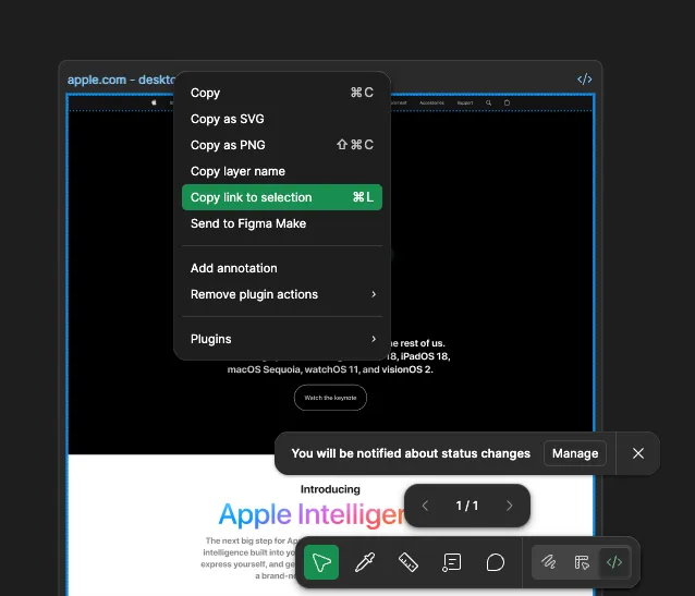 เลือก frame ที่ต้องการ reference จากนั้นคลิกขวา เลือก Copy link to selection