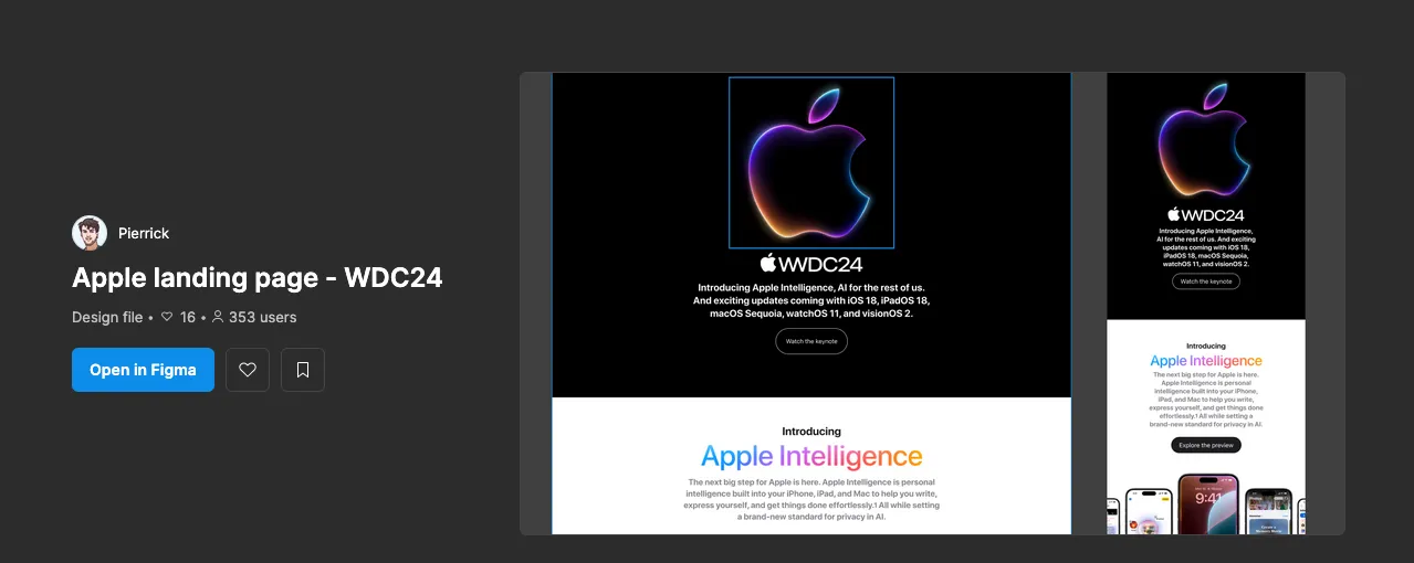 โดยในการทดสอบนี้เราจะลอง ให้ codex สร้าง landing page ง่ายๆ ตาม design นี้ Apple landing page - WDC24 (Community