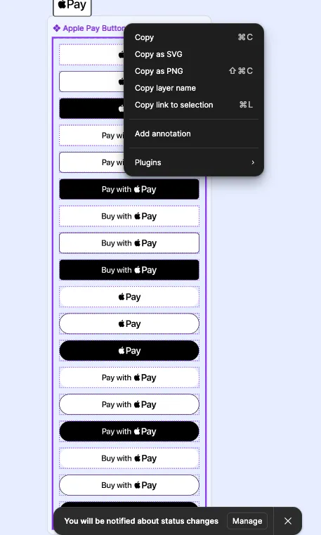 ในการทดสอบนี้เราจะให้ codex สร้าง component ปุ่มง่ายๆ ตาม design นี้ Apple Pay & Google Pay Buttons
